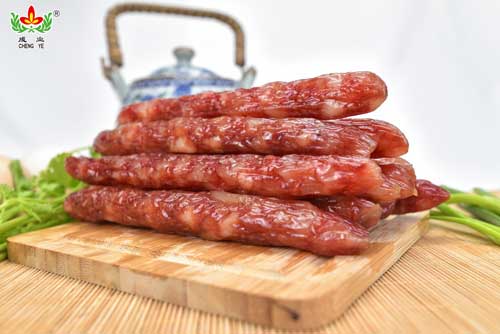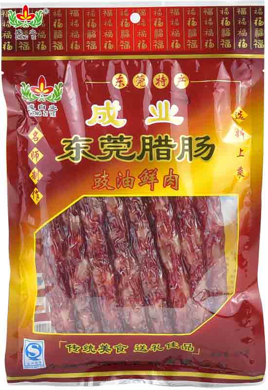 配料:猪肉、天然猪肠衣、食用盐、糖、酒、酱油、硝酸钠