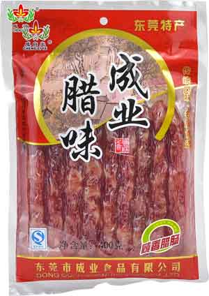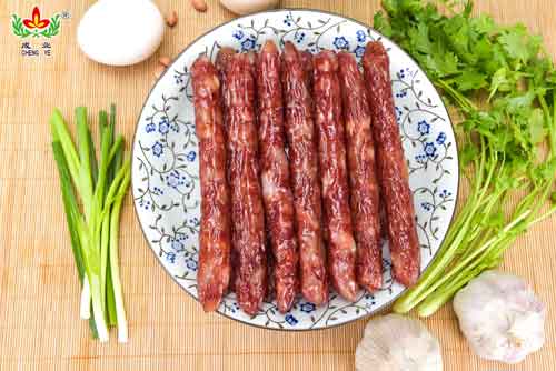 配料:猪肉、天然猪肠衣、食用盐、糖、酒、酱油、硝酸钠