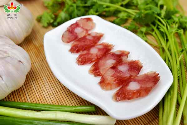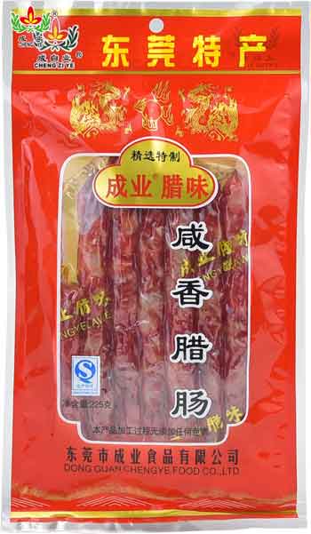 配料:猪肉、天然猪肠衣、食用盐、糖、酒、酱油、硝酸钠