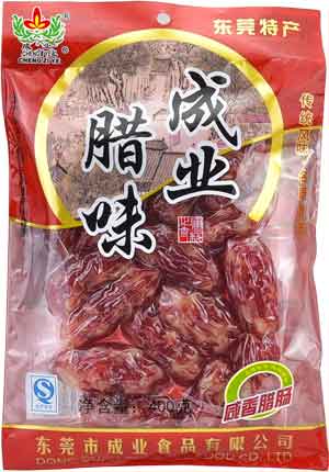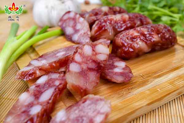 配料:猪肉、天然猪肠衣、食用盐、糖、酒、酱油、硝酸钠