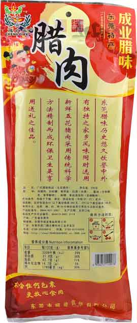 配料:猪肉、天然猪肠衣、食用盐、糖、酒、酱油、硝酸钠